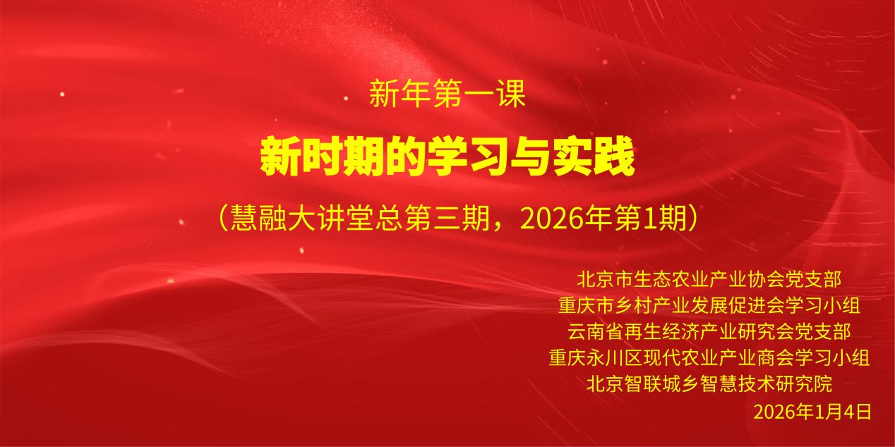 新年伊始,万象更新。2026年1月4日,为深入学习贯彻党的二十届四中全会精神,紧扣“十五五”规划开篇部署,北京市生态农业产业协会党支部、重庆市乡村产业发展促进会学习小组、云南省再生经济产业研究会党支部、重庆永川区现代农业产业商会学习小组、北京智联城乡智慧技术研究院慧融大讲堂联合开展共建学习活动,聚焦“新时期的学习与实践”。各单位全体党员及骨干成员齐聚一堂,共同学习国家发展战略,探讨如何在新时代背景下推动乡村产业高质量发展。此次党课内容丰富、主题鲜明,为新年工作指明了方向。北京市生态农业产业协会党支部书记、重庆市乡村产业发展促进会学习小组组长刘首文主持会议并总结。