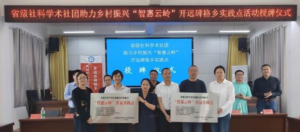 省社科联学会部、开远市政府、研究会领导向碑格乡实践点援牌