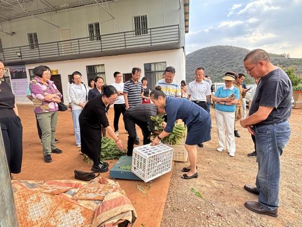 省州专家、开远市相关领导还调研考察了羊街乡宗舍村委会美伍村“以草代粮,草畜一体化种养项目”基地。云南爱姆特农林科技发展有限公司向大家介绍了“草畜一体化产业链”过程,以植草→绿色发酵饲料→生态猪养殖→生猪屠宰、加工粪便发酵有机肥→有机肥还田的种养结合循环农业一体化产业闭环。