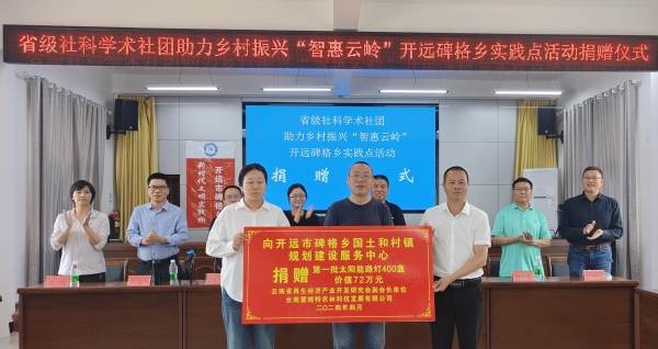 云南省再生经济产业开发研究会副会长单位云南爱姆特农林科技发展有限公司,向开远市碑格乡捐赠第一批太阳能路灯400盏(价值人民币72万元);向开远市碑格乡中小学生捐赠助学金人民币5000元整。捐赠活动,增强了省级社科学术社团组织和会员企业同碑格乡老百姓的凝聚力和向心力,提升了村民的生活质量和幸福感,为党建引领碑格乡项目有序发展奠定了扎扎实实的基础。